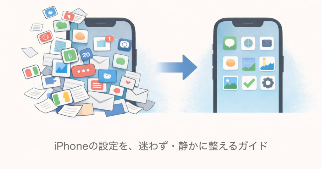 ホーム画面やアプリがごちゃごちゃしていませんか?通知・写真・容量を、迷わず整えるiPhone設定ガイドです。